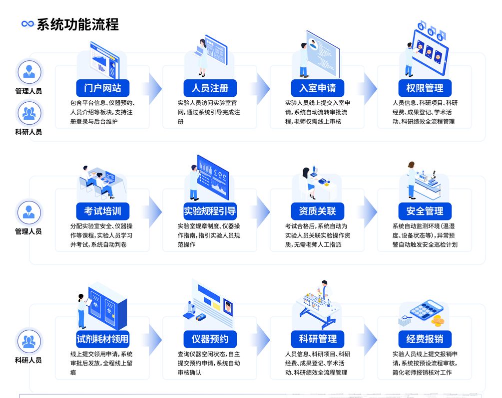 智慧实验室管理一体化平台架构,是一种将实验室管理中的各个环节和关键要素进行整合和协同的平台架构。它以科研实验室管理为核心,将科研管理、实验室安全管理、大型仪器设备共享管理、试剂物料及危化品管理、生物样本库管理等系统融合到统一平台进行管理,各管理系统无缝协作,实现了对实验室的全方位规范化管理。该架构采用先进的技术手段,如球盟会(中国)据、云计算、数字孪生、AI 行为分析等,对实验室的全过程进行全面规范和监控,确保实验过程符合法规要求。还给予实时的数据监测和报告功能,方便管理者及时掌握实验室的科研进展情况,为国家监管部门给予准确的信息支持。顺利获得该架构,实验室能够实现低成本、快速度、高质量的管理模式,提高科研管理的效率和水平。